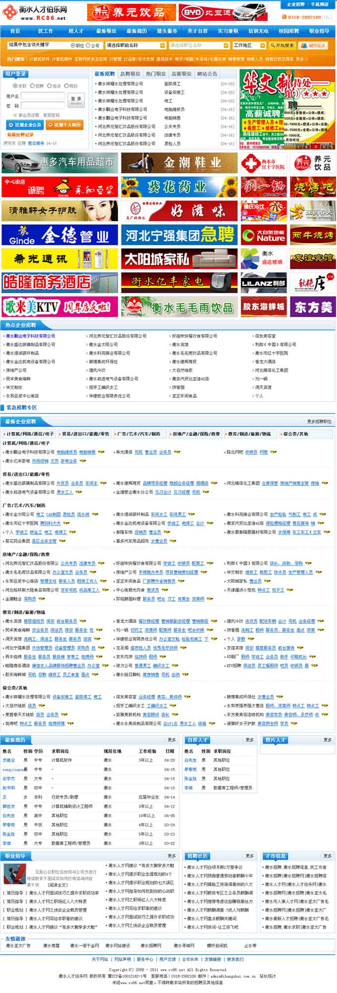全新的界面設計,“紙媒+網絡+現場”三位一體的人才互動平臺--衡水人才伯樂網(www.rc86.net)于2011年4月10日全新上線,界時衡水亞太廣告紙媒將展開衡水人才伯樂網全面的宣傳攻勢,為衡水企業(yè)、商戶招聘人才提供一個全新的互動交流平臺,同時也為各界精英提供選擇就業(yè)崗位的新平臺,歡迎注冊企業(yè)用戶,歡迎上傳個人簡歷!