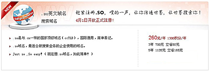 2)“so”這個單詞在英文中的意思——“因此,如此”,是一個非常常見的單詞,如sina.so(新浪如此),easy.so(如此簡單),有趣易記。