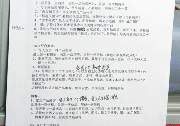 (6)拆分總體工作指標到每一天,下圖是天地彩鋼網(wǎng)絡推廣部的每日指標,可參考: